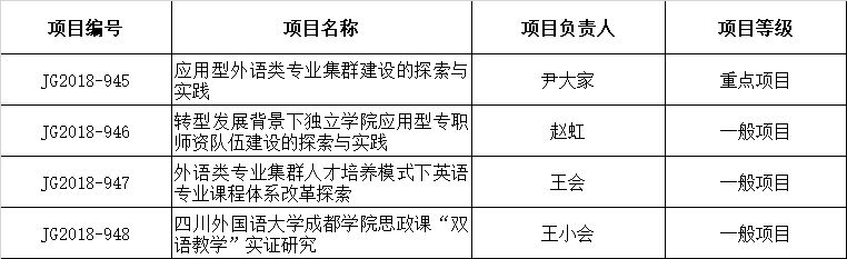 按照《四川省教育厅关于公布四川省2018-2020年高等教育人才培养质量和教学改革立项名单的通知》(川教函〔2019〕270号)、《四川省教育厅关于开展四川省2018-2020年高等教育人才培养质量和教学改革项目结题验收的通知》精神,经学校组织专家验收、研究审核上报和教育厅审查、公示,我校获批的4个项目全部通过结题验收。