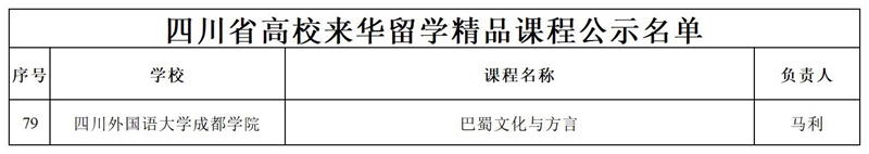 近日,四川省教育厅发布了《关于四川省来华留学精品课程名单的公示》已结束,我校公共基础部马利副教授主持的《巴蜀文化语方言》成功入选。据悉,此次共有96门课程入选四川省来华留学精品课程。