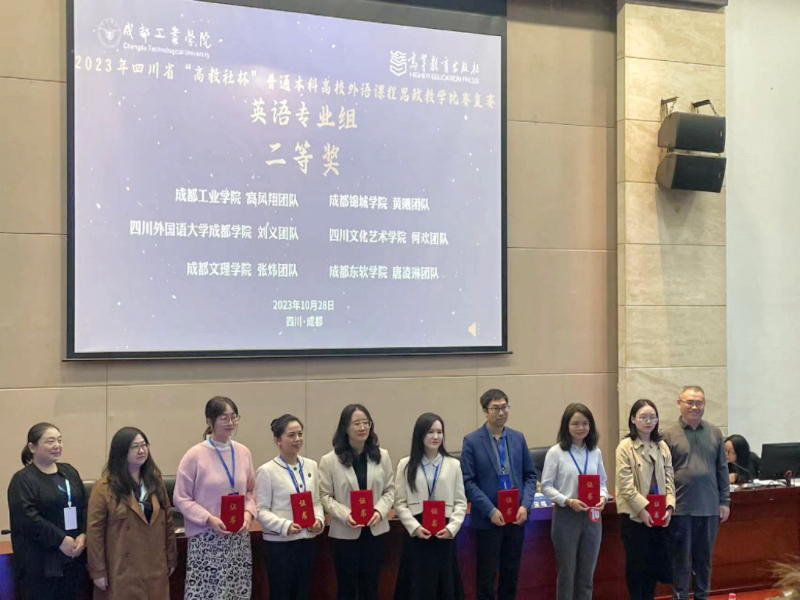 10月28日,2023年四川省“高教社杯”普通本科高校外语课程思政教学比赛(复赛)在成都工业学院举行,我校英语语言文化与翻译学院刘义副教授团队(成员:丁思妤、许姝馨、李璐瑶、韦家玲)凭借出色表现荣获英语专业组四川省二等奖。