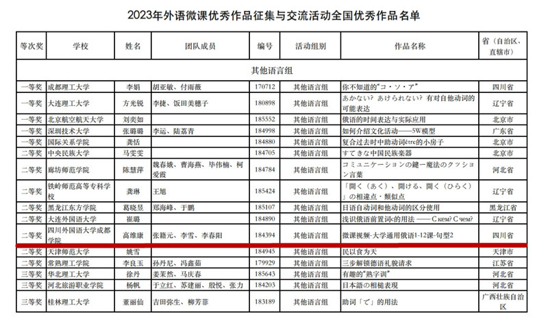 10月22日,中国外语微课网发布2023年外语微课优秀作品征集与交流活动全国优秀作品名单,我校中东欧语言学院教师高维康团队(成员:张籍元、李雪、李春阳)的作品《大学通用俄语1-12-句型2》荣获全国二等奖(其他语言组)。