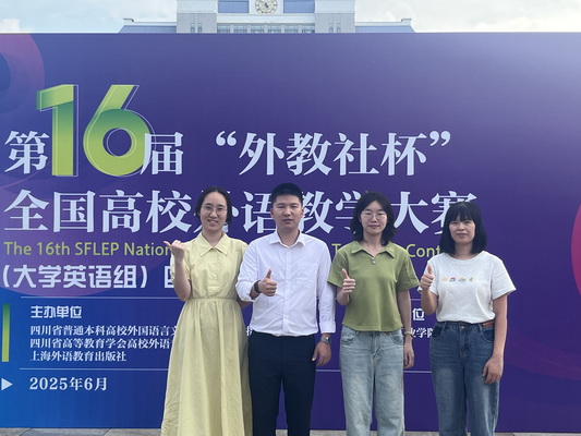 6月21日,第十六届“外教社杯”全国高校外语教学大赛(大学英语组)四川省决赛举行。我校商务英语学院夏敏、刘静静、熊静楠、吴雨薇、郭宇婷等教师组成的团队凭借优异表现,荣获四川赛区视听说课组一等奖。