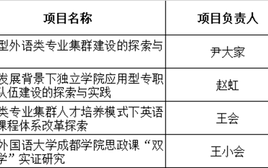 我校四个项目入选2021—2023年高等教育人才培养质量和教学改革项目近日,四川省教育厅下发了《关于公布2021-2023年四川省高等教育人才培养质量和教学改革项目立项名单的通知》,经学校推荐、专家评审、教育厅公示,共遴选出1558个2021—2023年高等教育人才培养质量和教学改革项目(重点项目361个、一般项目11...