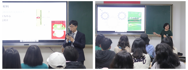 “结构整体视听教学法”是一套有着科学的教学流程和教学基本原则的教学方法,能对学生进行有效的听力训练,促成教学目标的达成。学校第一届教师技能大赛获奖者亚非语言学院教师李旋和英语学院教师欧阳伶泠在教学展示中,分别介绍分析了韩语、英语听力课程教学目标和教学流程设计等,并按照“结构整体视听教学法”全方位地进行了课程展示,条理清晰,内容充实,为提高听力课堂的教学质量和教学效果提供了经验和示范。