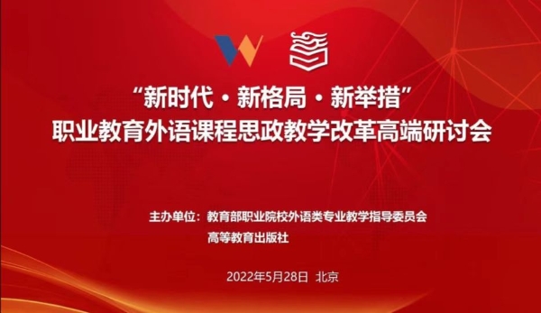 教育部职业院校外语类专业教学指导委员会联合高等教育出版社于2022年5月28日举办了线上“新时代、新格局、新举措——职业教育外语课程思政教学改革高端研讨会”。我校中东欧语言学院院长杨柳副教授作为教指委委员参会并做主旨报告。