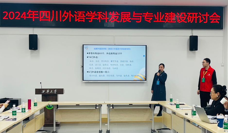 11月30日,2024年四川省高等教育学会高校外语专委会年会暨外语学科发展与专业建设论坛在成都举行。本次研讨会由四川省高等教育学会高校外语专业委员会、四川省普通本科高等学校外国语言文学类专业教学指导委员会主办。我校副校长沈光临教授受邀参会并作主旨报告,教务处处长刘鹰副教授,教师发展中心主任、亚非语言学院院长单俊教授参加会议并在分论坛中发言。